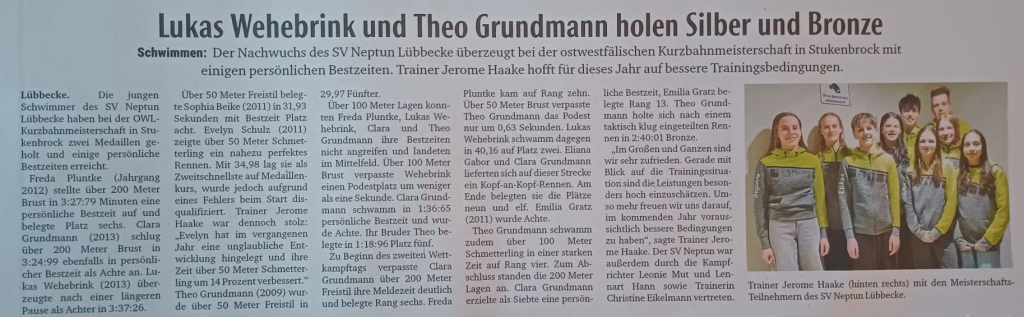 Unsere Wettkampfmannschaft war bei den OWL-Kurzbahnmeisterschaften 2025 erfolgreich unterwegs – und der Bericht dazu ist jetzt auch in der Presse erschienen.
